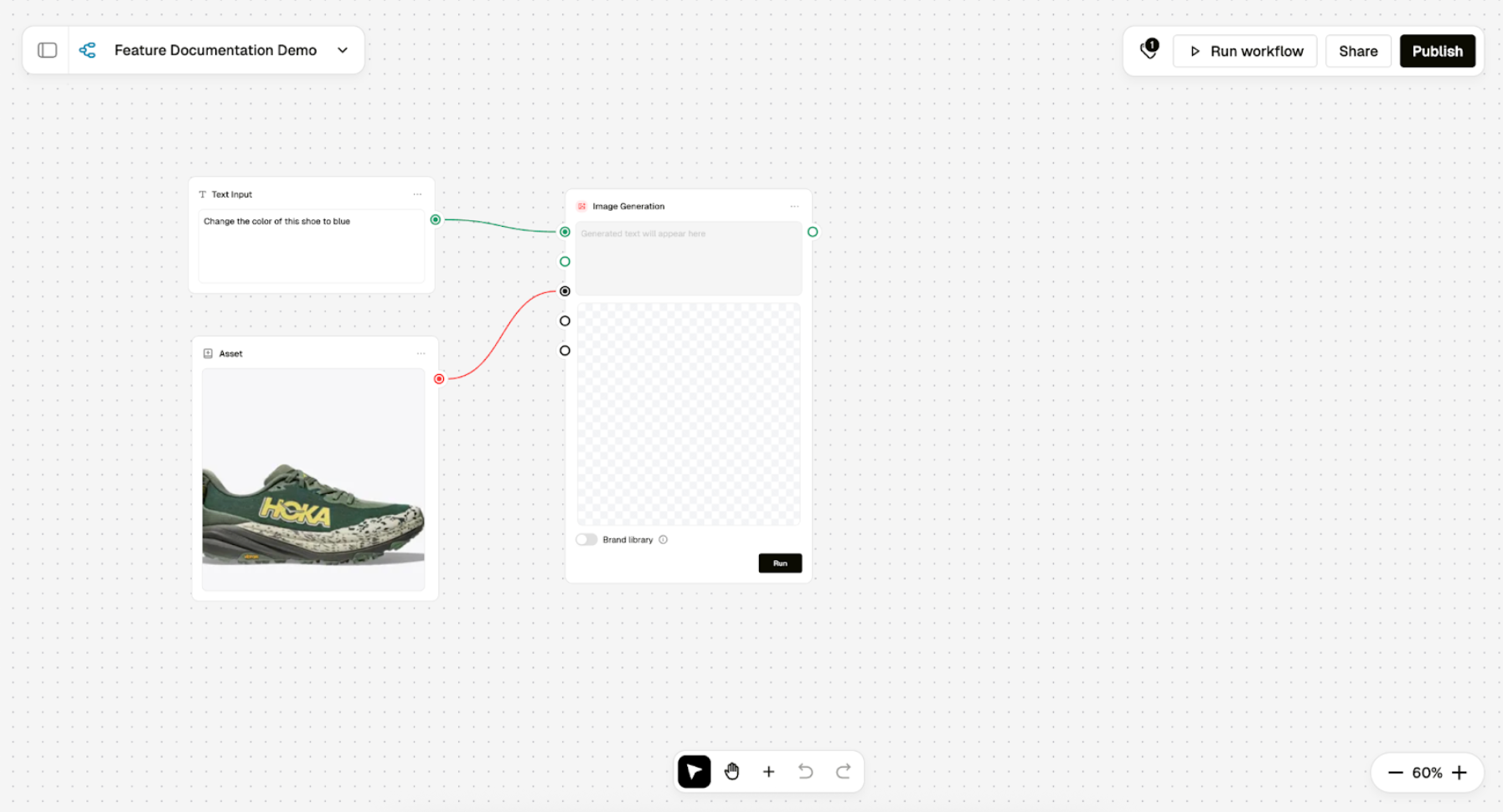 Workflows are a visual builder where you connect tasks and agents into a defined sequence, set the prompt for each step, and run it end to end. You can branch paths to explore variations, then reuse the same setup again and again.